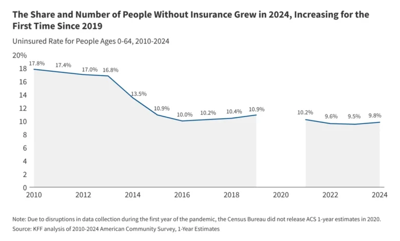 For the first time since 2019, the United States has experienced a measurable increase in the number of individuals living without health insurance, signaling a reversal of the progress made during the early years of the decade. According to the latest analysis of the American Community Survey (ACS) and supplemental health data, the total number of uninsured individuals under the age of 65 rose by more than 1.3 million in 2024, reaching a total of 26.7 million people. The uninsured rate for this demographic climbed from 9.5% in 2023 to 9.8% in 2024. While this figure remains lower than the pre-pandemic rate of 10.9% recorded in 2019, the upward trajectory reflects significant structural shifts in the public health landscape, primarily driven by the conclusion of pandemic-era protections and the ongoing complexity of the nation’s fragmented insurance system.
